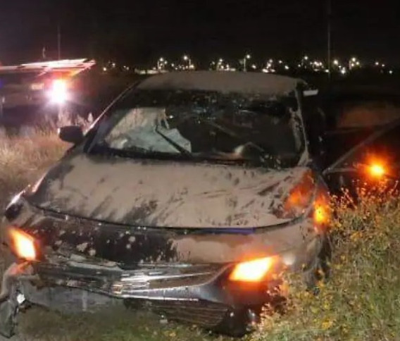 Sin embargo, debido a la falta de pericia al volante y la velocidad inmoderada, el conductor perdió el control del vehículo, impactando contra un montículo de arena, lo que provocó que el auto terminara dentro de un predio baldío completamente destrozado.